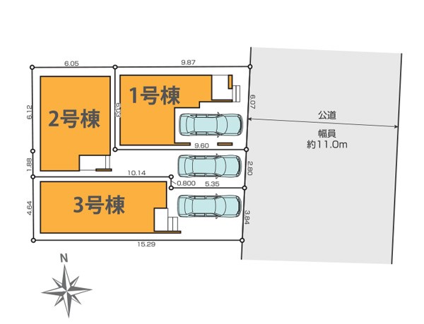 | 駐車場 | 1台 | 道路の幅員 | 2号棟:東11m |