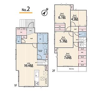 | 駐車場 | 2台 | 道路の幅員 | 1号棟:北西4m /2号棟:北西4m |