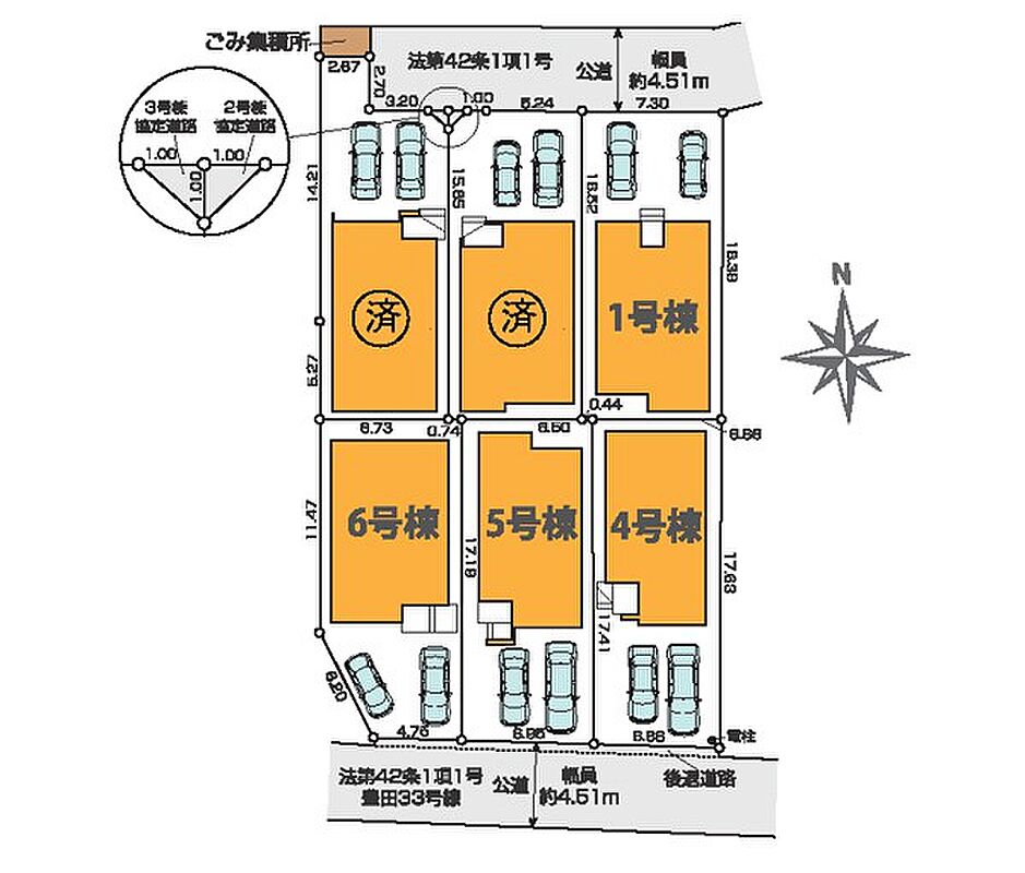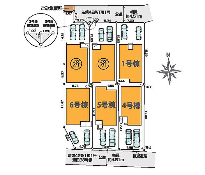 | 駐車場 | 2台 | 道路の幅員 | 5号棟:北4.5m |