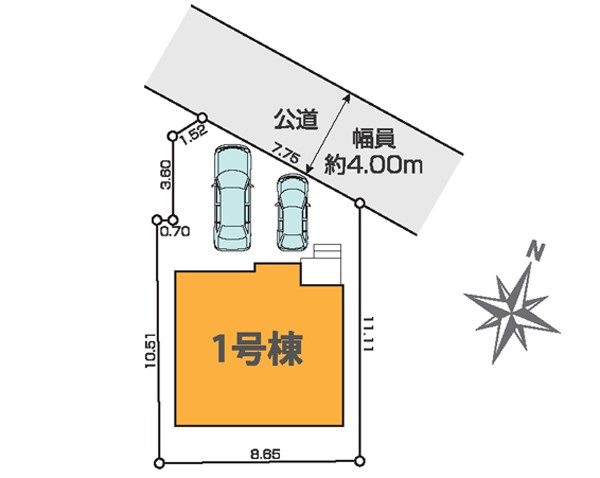 | 駐車場 | 2台 | 道路の幅員 | 1号棟:北西4m |