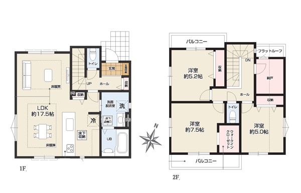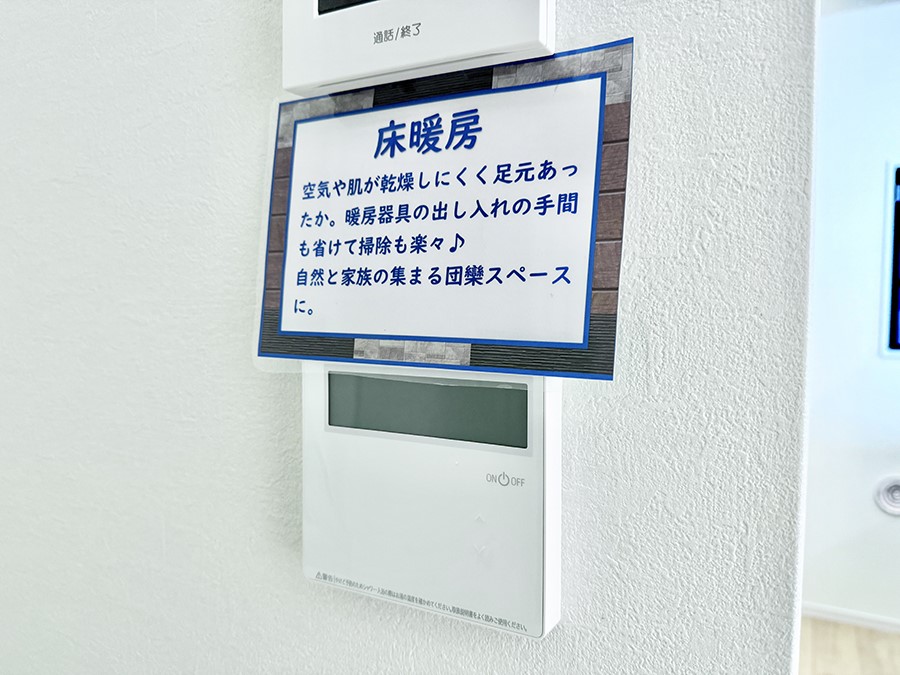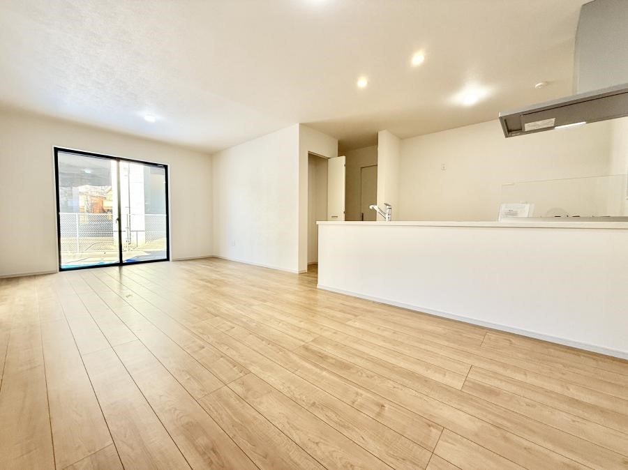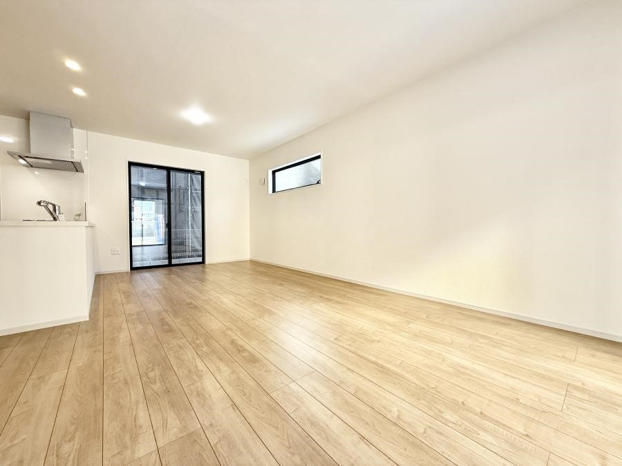 新築一戸建て 17.5帖のリビングは床暖房付きで冬でも心地よく、家族のくつろぎ空間に■府中市分梅町2丁目5期■