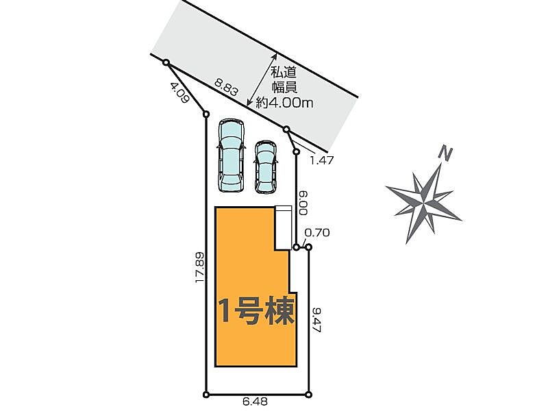 | 駐車場 | 2台 | 道路の幅員 | :北西4m |