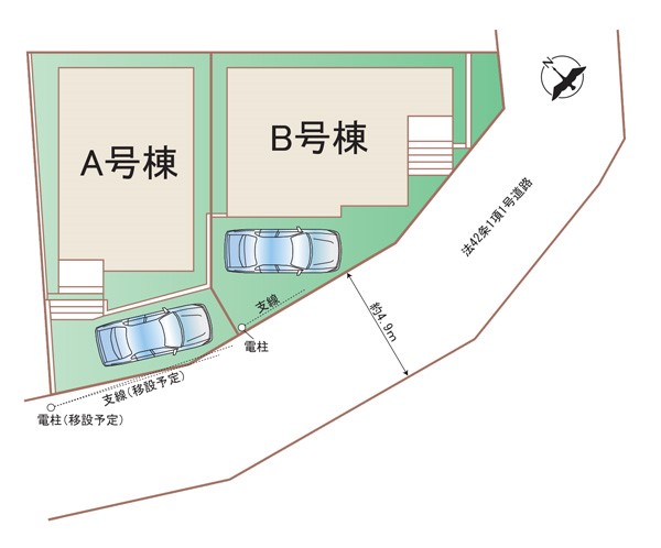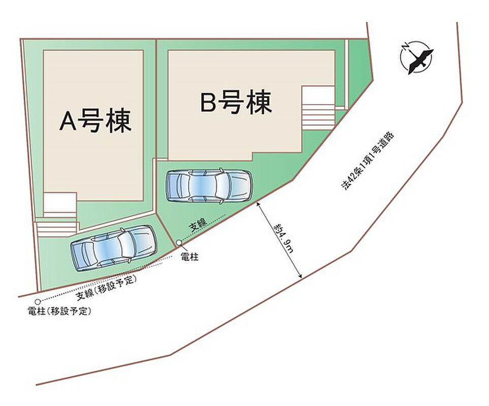 | 駐車場 | 1台 | 道路の幅員 | A号棟:南4.9m /B号棟:南4.9m |