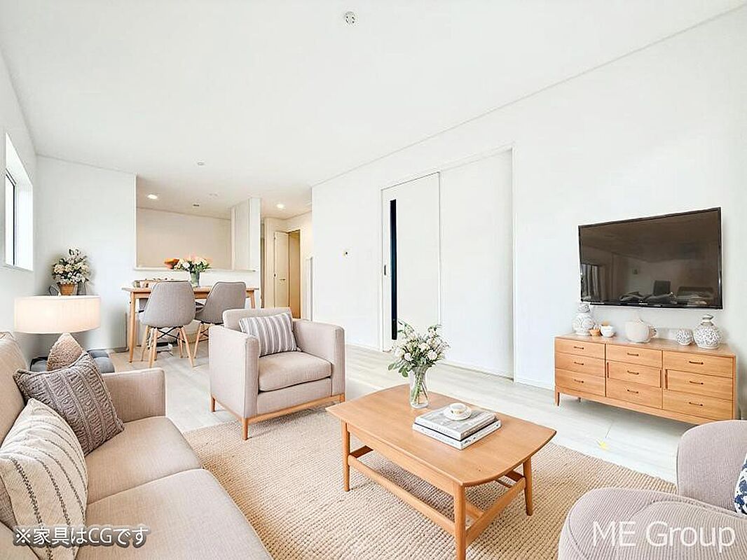 - ※完成予想図やCG合成画像は、門塀・植栽・庭・外観等、実際とは多少異なる場合があります。