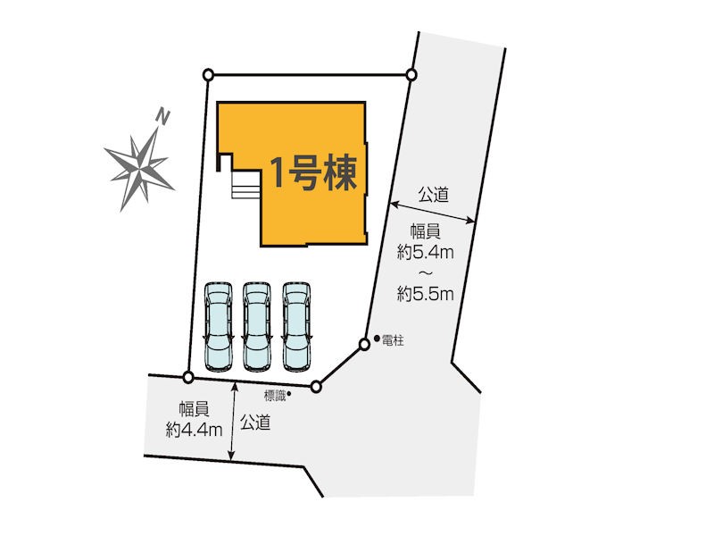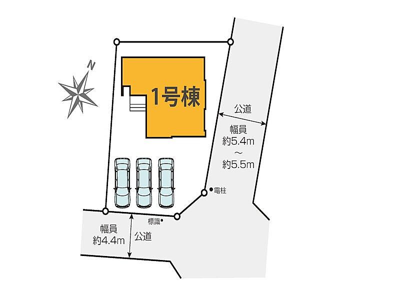 | 駐車場 | 3台 | 道路の幅員 | :東5.4m 南4.4m |