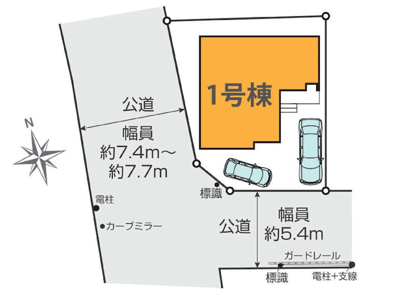 | 駐車場 | 2台 | 道路の幅員 | :西7.4m 南5.4m |