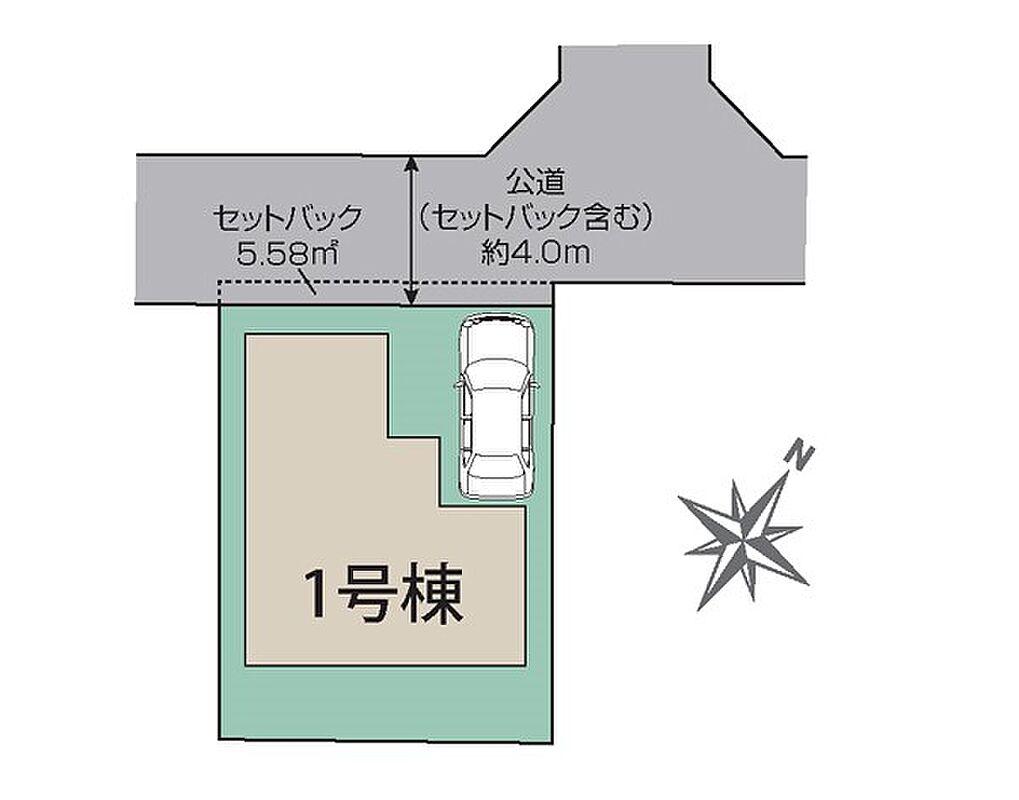 | 駐車場 | 1台 | 道路の幅員 | 1号棟:北西4m |