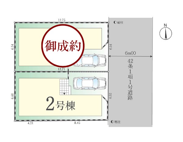 | 駐車場 | 1台 | 道路の幅員 | 2号棟:東5.9m |