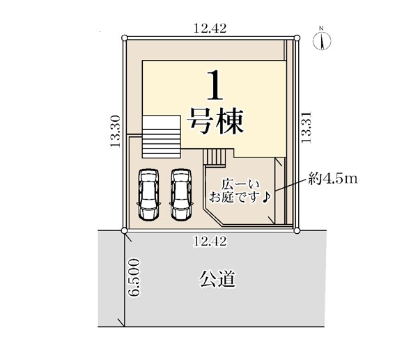 | 駐車場 | 2台 | 道路の幅員 | 1号棟:南6.5m |