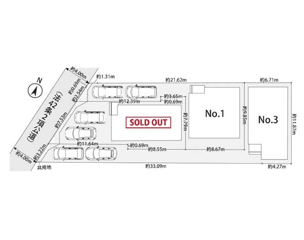 | 駐車場 | 1台 | 道路の幅員 | 1号棟:西4m /3号棟:西4m |
