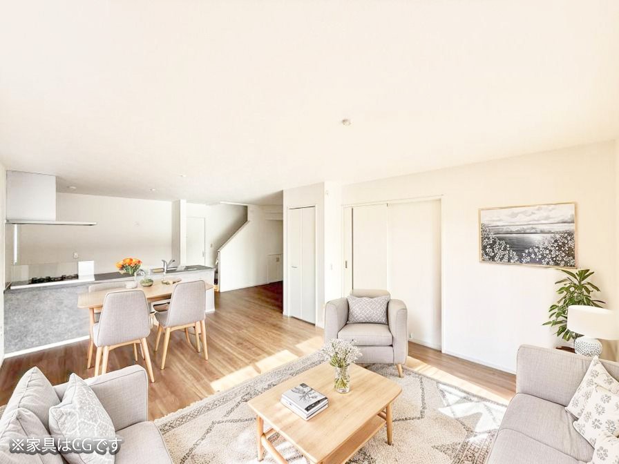 - ※完成予想図やCG合成画像は、門塀・植栽・庭・外観等、実際とは多少異なる場合があります。