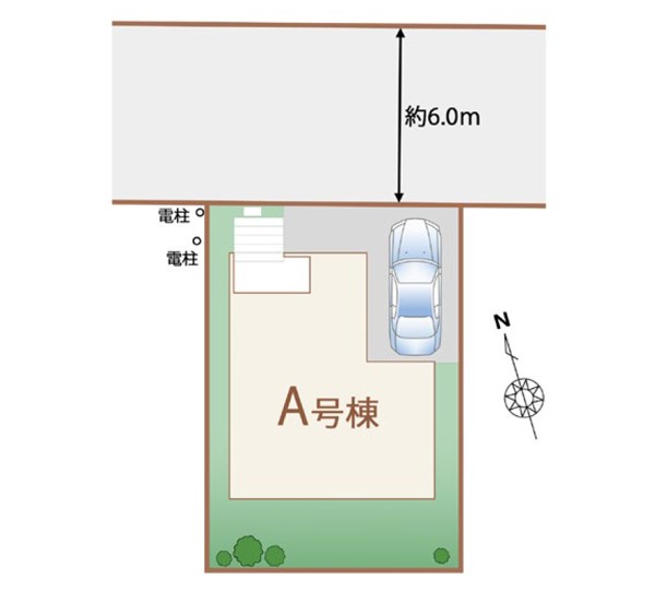 | 駐車場 | 1台 | 道路の幅員 | A号棟:北6m |