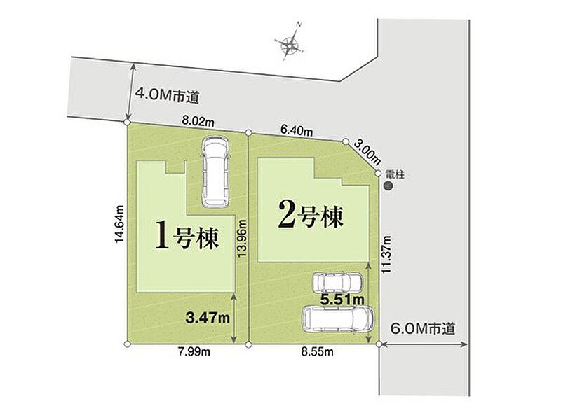 | 駐車場 | 1台 ~ 2台 | 道路の幅員 | 1号棟:北4m /2号棟:北4m 東6m |