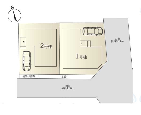 | 駐車場 | 1台 | 道路の幅員 | 1号棟:南4m 東5.1m /2号棟:南4m |