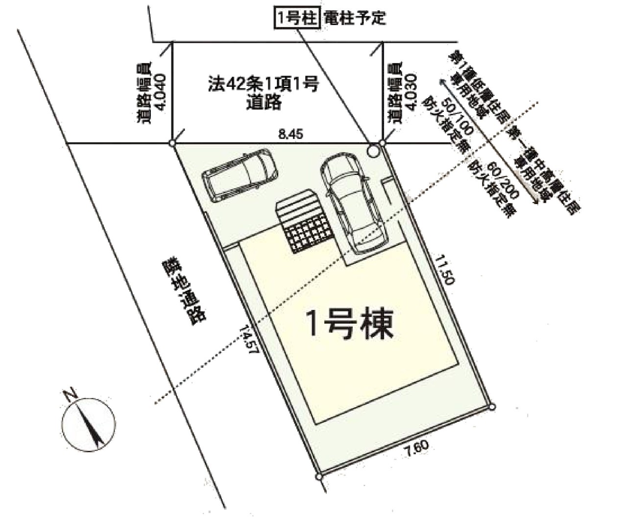 | 駐車場 | - | 道路の幅員 | 1号棟:北東4m |