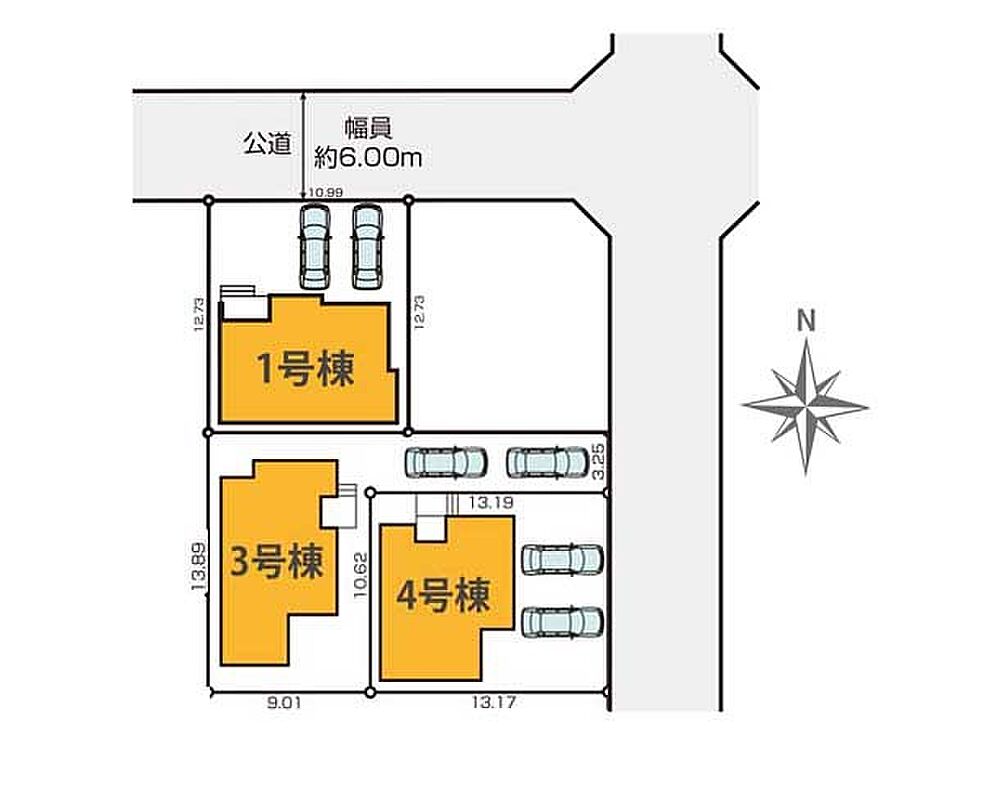 | 駐車場 | 2台 | 道路の幅員 | 4号棟:東6m /1号棟:北6m /3号棟:東6m |