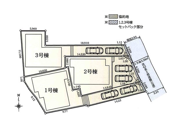 | 駐車場 | 2台 | 道路の幅員 | 3号棟:東3.3m /2号棟:東3.3m |