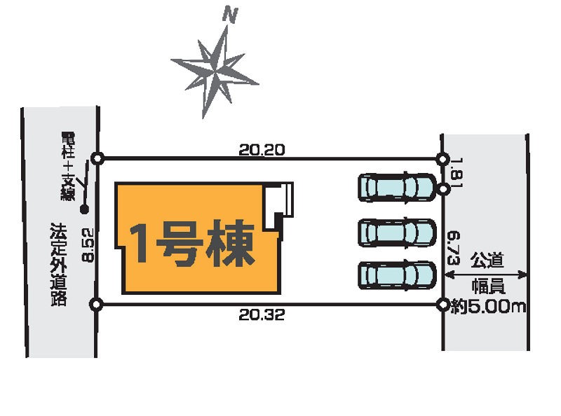 | 駐車場 | 3台 | 道路の幅員 | 1号棟:東5m |