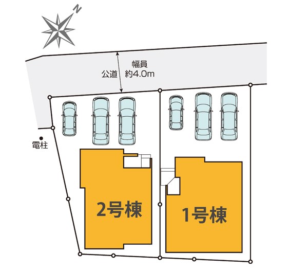 | 駐車場 | 3台 | 道路の幅員 | 2号棟:北西4m /1号棟:北西4m |
