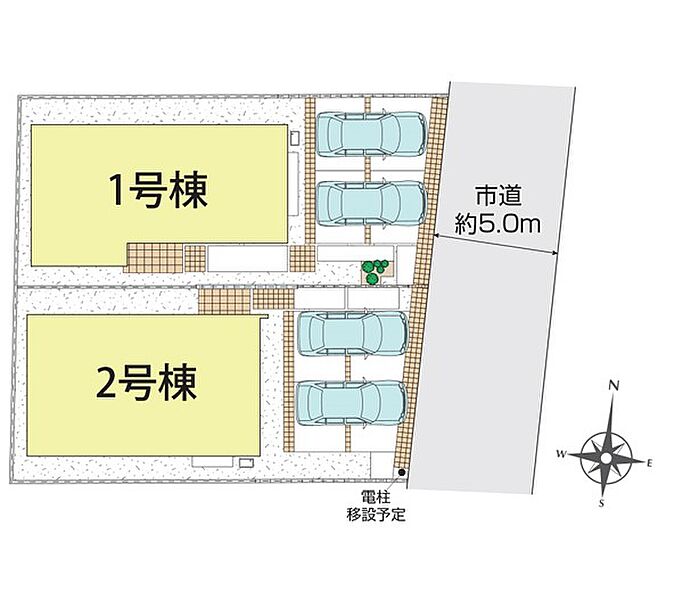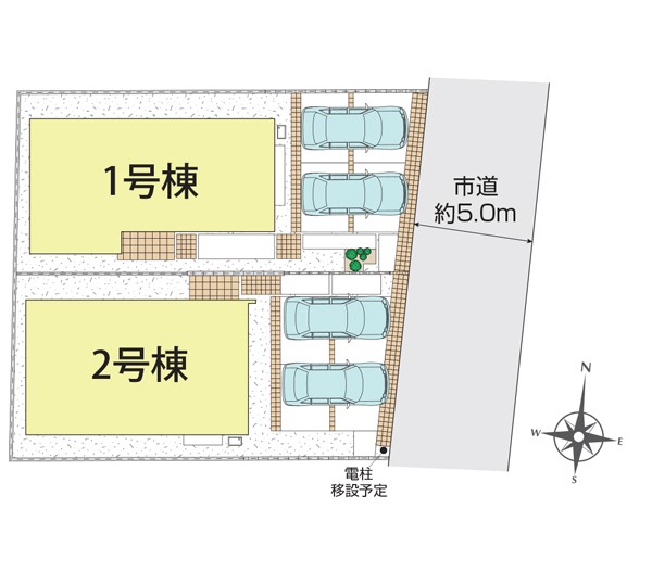 | 駐車場 | 2台 | 道路の幅員 | 1号棟:東5m |