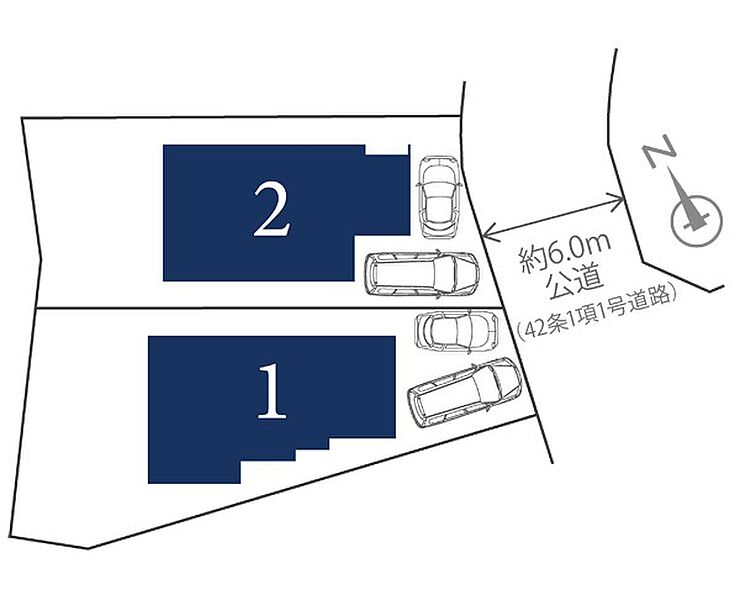 | 駐車場 | 2台 | 道路の幅員 | 1号棟:東6m /2号棟:東6m |