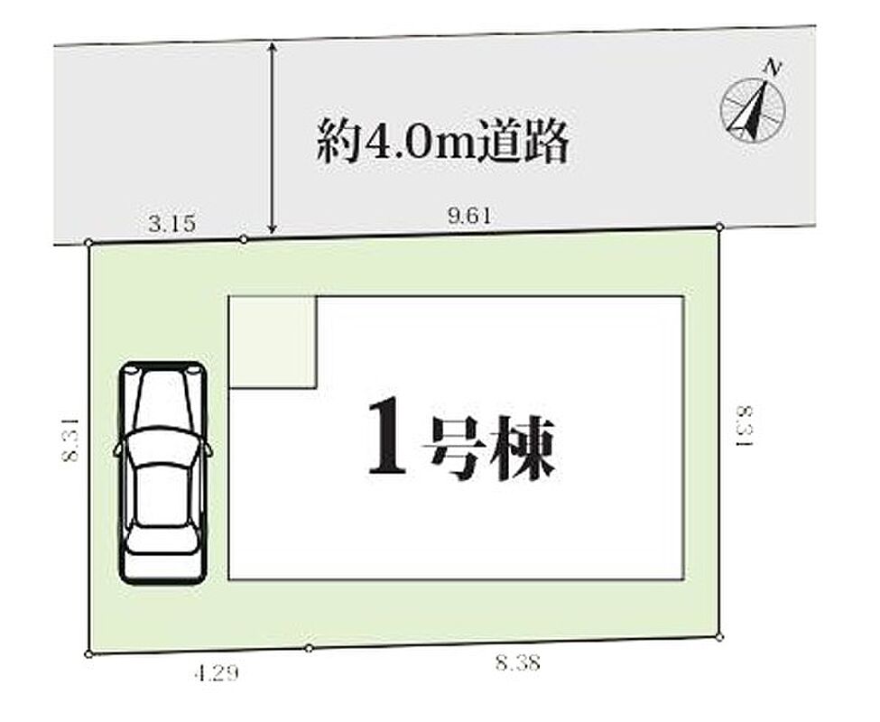 | 駐車場 | 1台 | 道路の幅員 | 1号棟:北西4m |