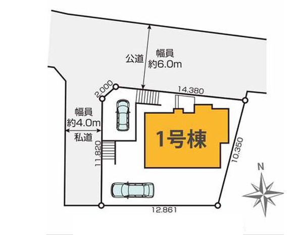 | 駐車場 | 2台 | 道路の幅員 | :北6m 西4m |