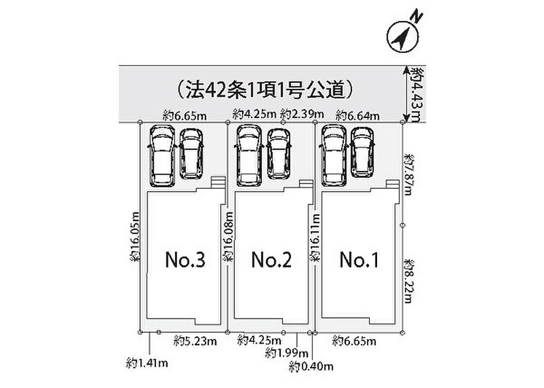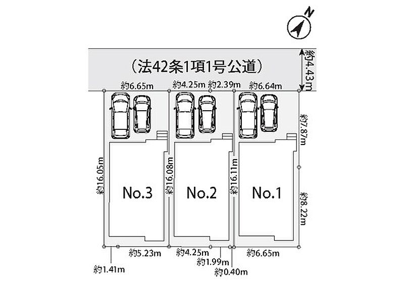 | 駐車場 | 2台 | 道路の幅員 | 3号棟:北西4.4m /2号棟:北西4.4m /1号棟:北西4.4m |