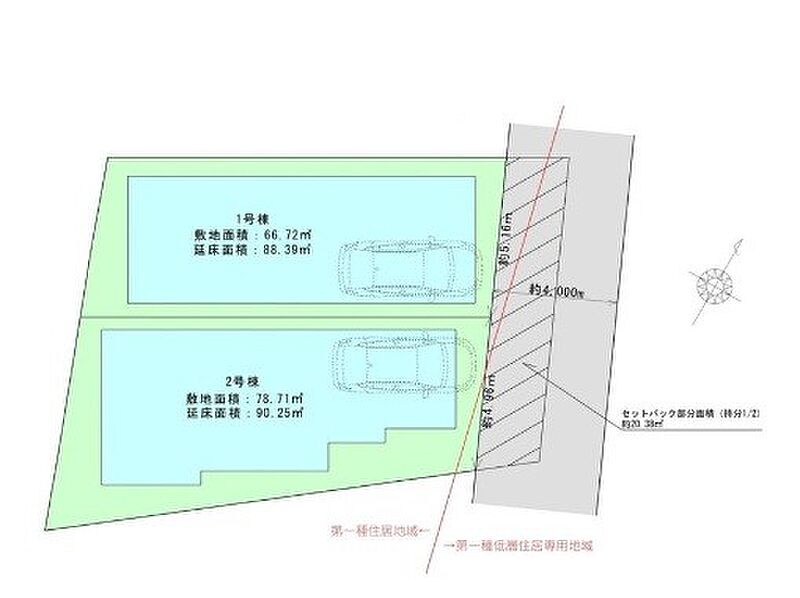 - 66.72m2~78.71m2<私道負担面積20.38m2 私道負担割合1/2>