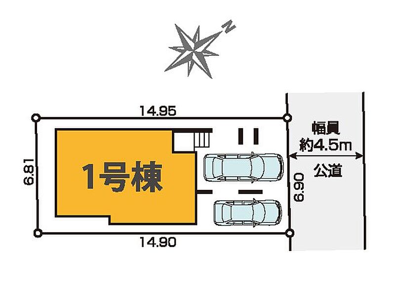 | 駐車場 | 2台 | 道路の幅員 | 1号棟:北東4.5m |