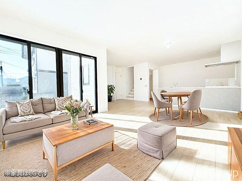 - ※完成予想図やCG合成画像は、門塀・植栽・庭・外観等、実際とは多少異なる場合があります。