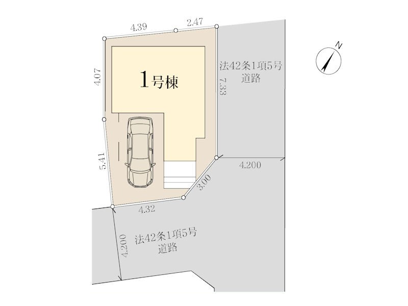 | 駐車場 | 1台 | 道路の幅員 | :北東4.2m 南東4.2m |