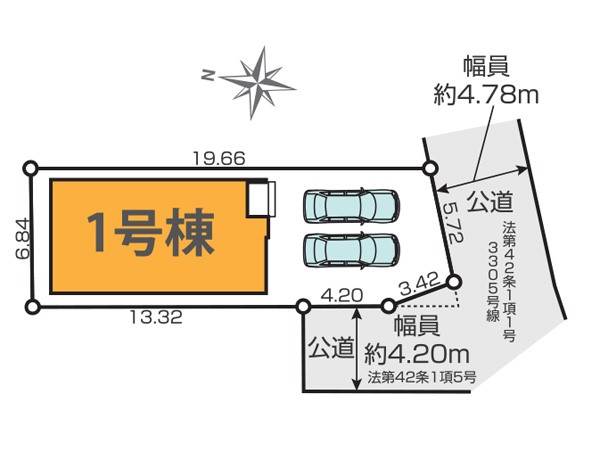 | 駐車場 | 2台 | 道路の幅員 | :南東4.7m |