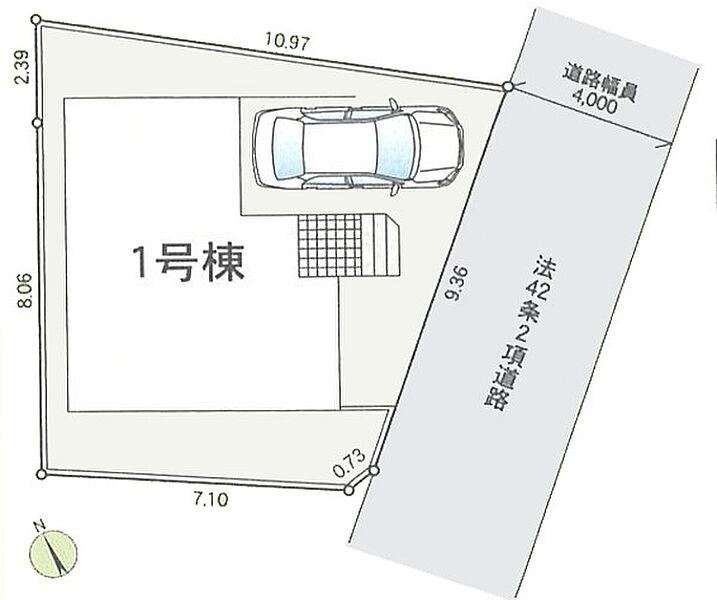 | 駐車場 | 1台 | 道路の幅員 | 1号棟:南東3m |