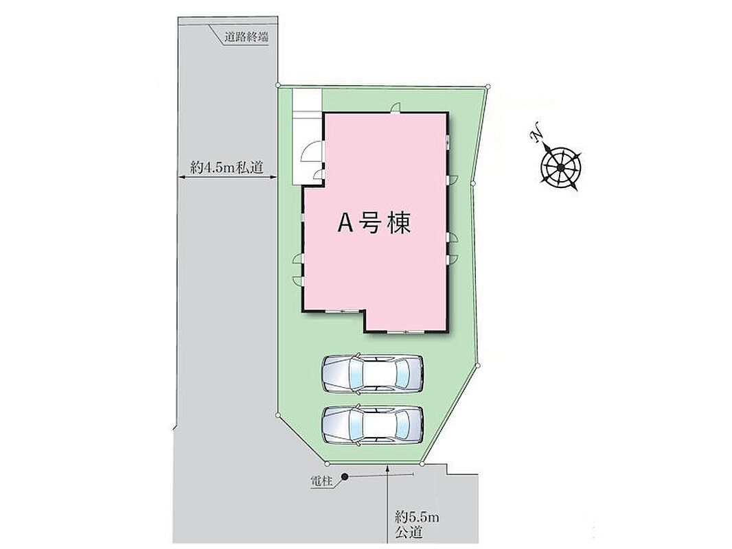 | 駐車場 | 2台 | 道路の幅員 | A号棟:北西4.5m 南西5.5m |
