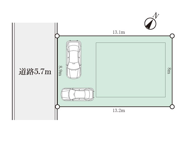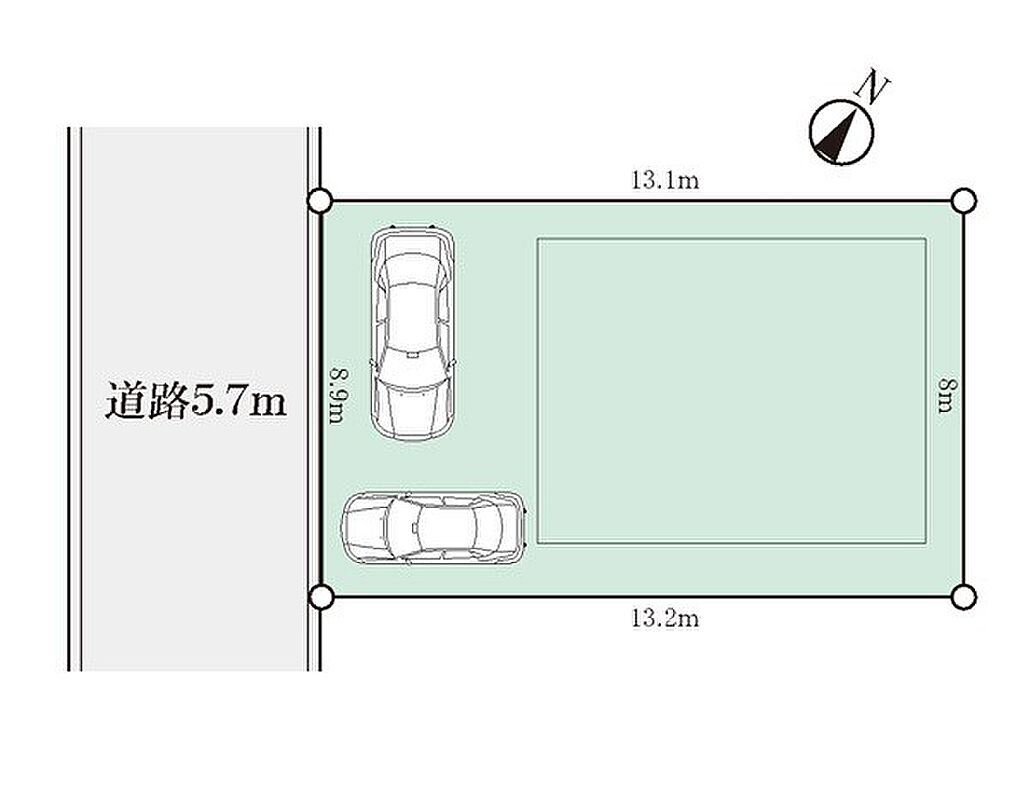 | 駐車場 | 2台 | 道路の幅員 | :北西5.7m |