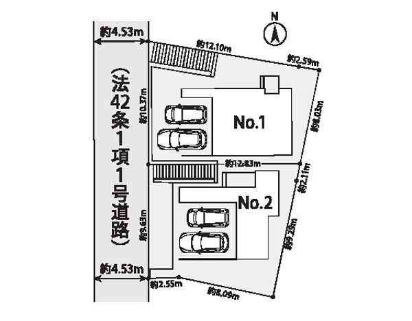 | 駐車場 | 2台 | 道路の幅員 | 1号棟:西5m |