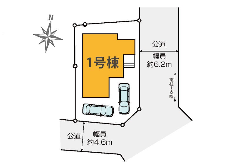 | 駐車場 | 2台 | 道路の幅員 | 1号棟:東6.2m 南4.6m |