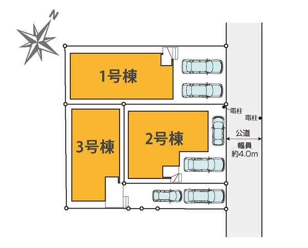 | 駐車場 | 2台 | 道路の幅員 | 2号棟:北東4m /3号棟:北東4m /1号棟:北東4m |