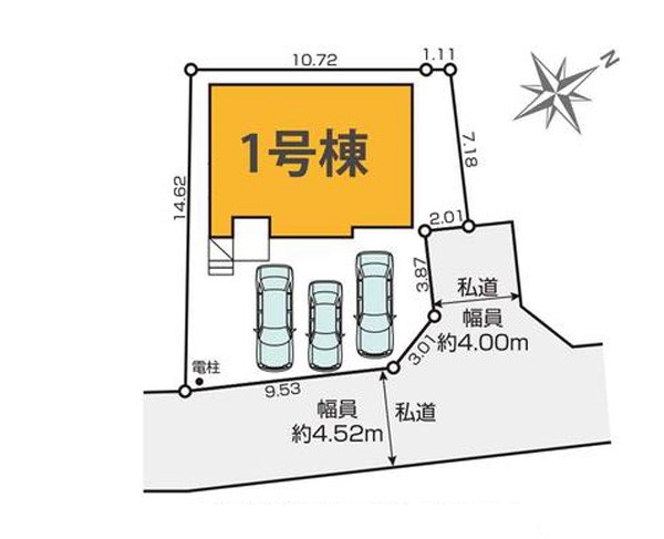 | 駐車場 | 3台 | 道路の幅員 | :北東4m 南東4.5m |