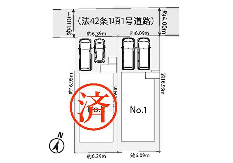 | 駐車場 | 2台 | 道路の幅員 | 1号棟:北西4m |