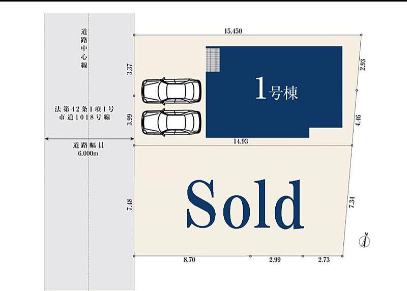 | 駐車場 | 2台 | 道路の幅員 | 1号棟:西6m |