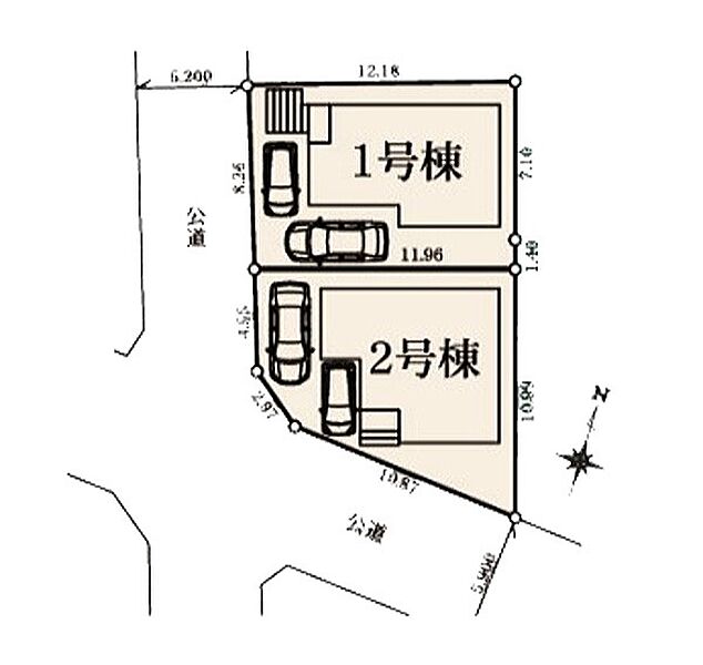 | 駐車場 | 2台 | 道路の幅員 | 1号棟:西5.2m |