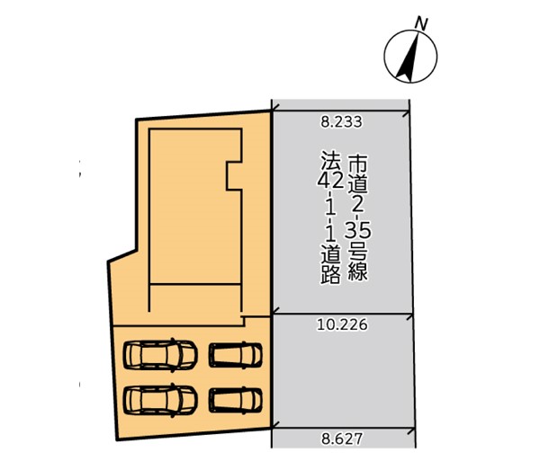| 駐車場 | 4台 | 道路の幅員 | :東8.2m |