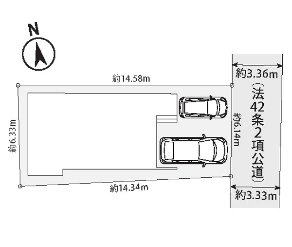 | 駐車場 | 2台 | 道路の幅員 | 1号棟:東4m |