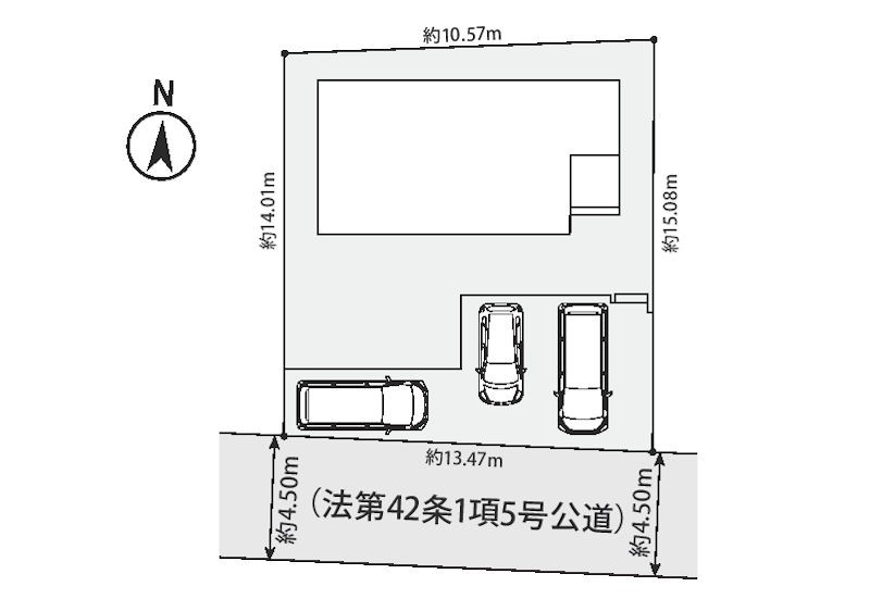 | 駐車場 | 3台 | 道路の幅員 | 1号棟:南4.5m |