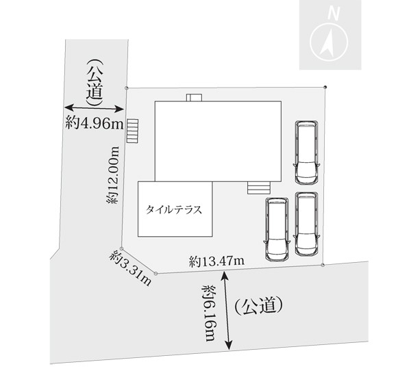 | 駐車場 | 3台 | 道路の幅員 | 1号棟:南西5m 南東6m |