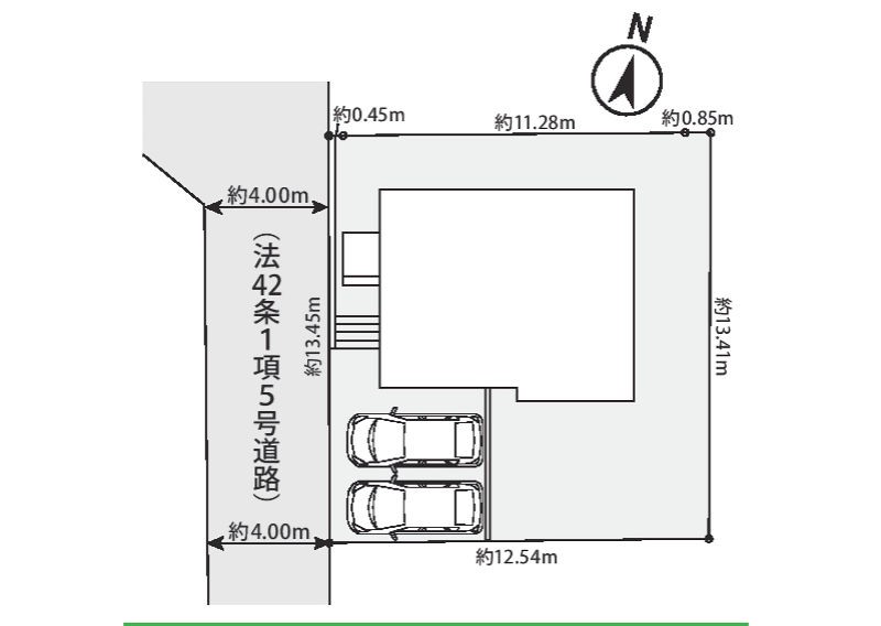 | 駐車場 | 2台 | 道路の幅員 | 1号棟:西4m |