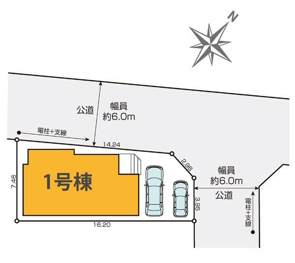 | 駐車場 | 2台 | 道路の幅員 | 1号棟:北西6m 北東6m |