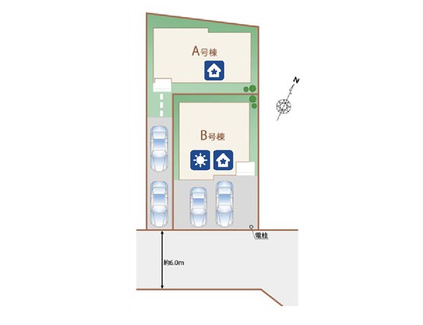 | 駐車場 | 2台 | 道路の幅員 | B号棟:南東6m /A号棟:南東6m |